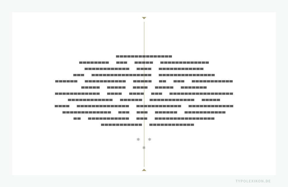 | ↑1 | Anmerkung: In der Paläografie und in älteren typografischen Lehrbüchern, z.B. des deutschen Typografen und Schriftgelehrten Jan Tschichold (1902–1974), wird der Asymmetrische Flattersatz deshalb auch als »Anaxialer Flattersatz« bezeichnet. |
