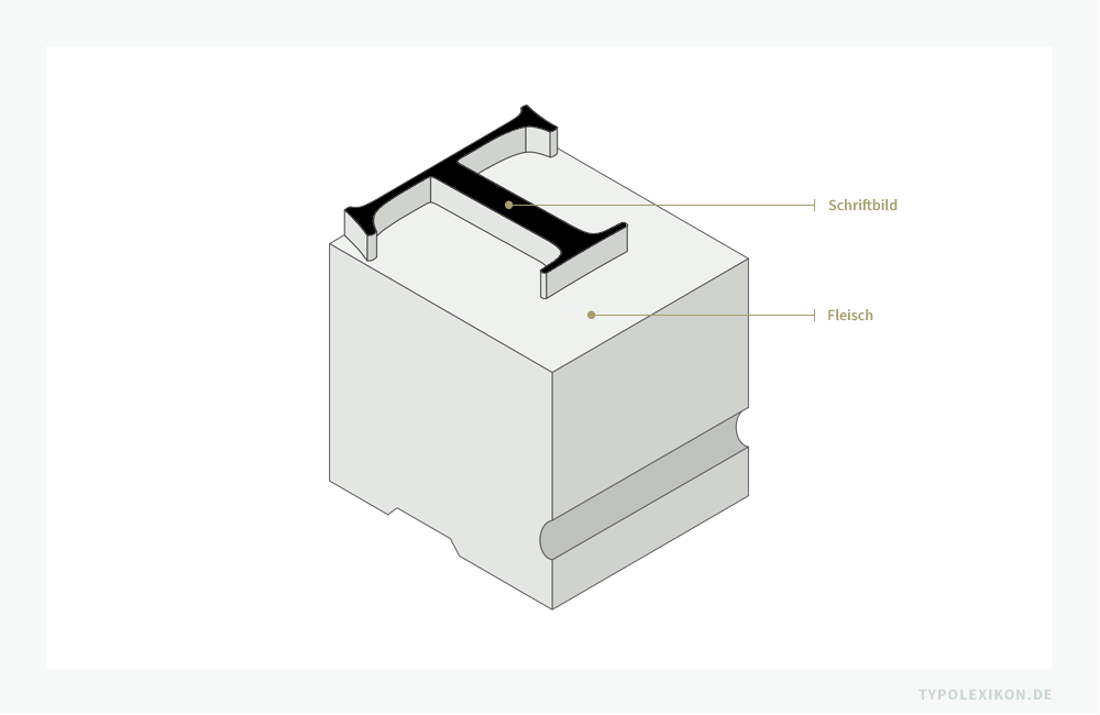 Im materiellen Schriftsatz wird der gesamte nichterhabene Außenraum des Kopfes eines Schriftkegels als Fleisch bezeichnet, also alle nichterhabenen Flächen seitlich, ober- und unterhalb des erhabenen Schriftbildes eines Schriftkegels, unabhängig von Schulterhöhe, Konus, Vor- und Nachbreite. Bezugspunkte sind die äußersten Ränder des Schriftbildes und die beiden Seitenflächen, die Stirnseite und der Rücken des Kegelkopfes.