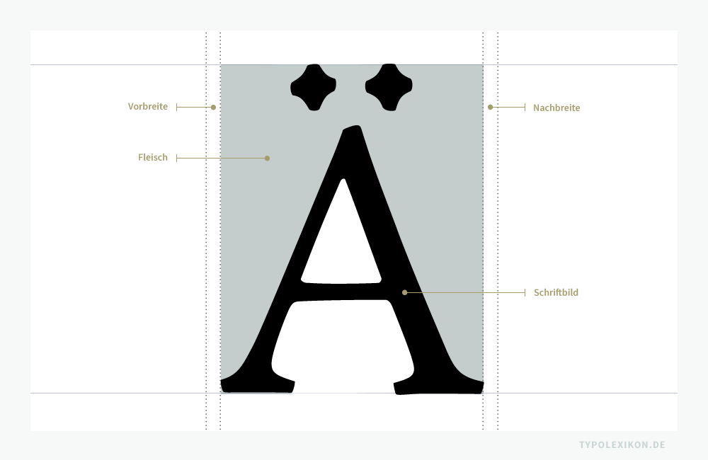 Die Vor- und Nachbreite eines Schriftzeichens grenzt bei digitalen Fonts direkt an das Fleisch bzw. Schriftbild, wird aber – im Gegensatz zu physischen Drucktypen – selbst nicht als Fleisch bezeichnet. Das Fleisch ober- und unterhalb eines Begrenzungsrahmens entfällt, da im DTP Desktop Publishing der Zeilenabstand über die Anwendersoftware, beispielsweise InDesign® von Adobe® oder QuarkXpress® von Quark®, flexibel geregelt wird.
