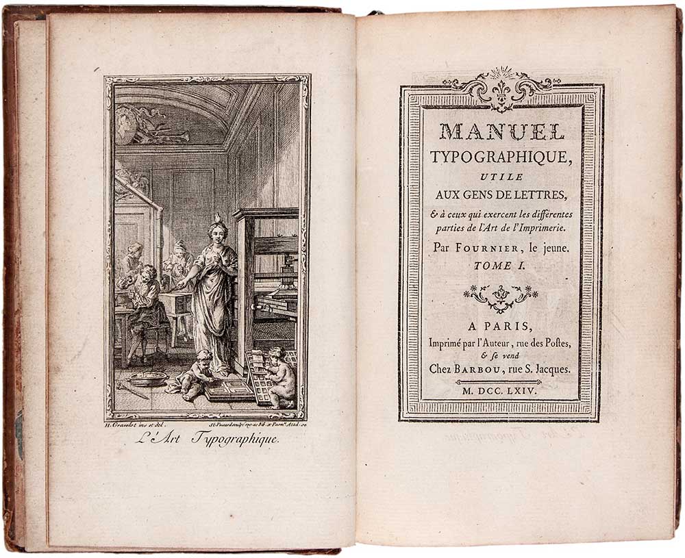 In der Werkstatt seines Vaters Jean-Claude Fournier (o.A.–1729), der seit 1707 Geschäftsführer der renommierten Schriftgießerei der Familie Guillaume Le Bé (1525–1598) war, dem einstigen Kompagnon von Claude Garamond (um 1498/99–1561), erlernte Pierre Simon das Stempelschneiden, Stechen und Schriftengießen. Daneben wurde er von J.B.G. Colson im Zeichnen, in der Aquarellmalerei und im Holzschnitt unterrichtet. 1) Zu dieser soliden kunsthandwerklichen Ausbildung kam ein intensives Interesse an der Drucktechnik und der Entwicklung der Typografie, was Pierre Simon Fournier zu einem der frühesten Theoretiker und Historiker seiner Zunft machte.
