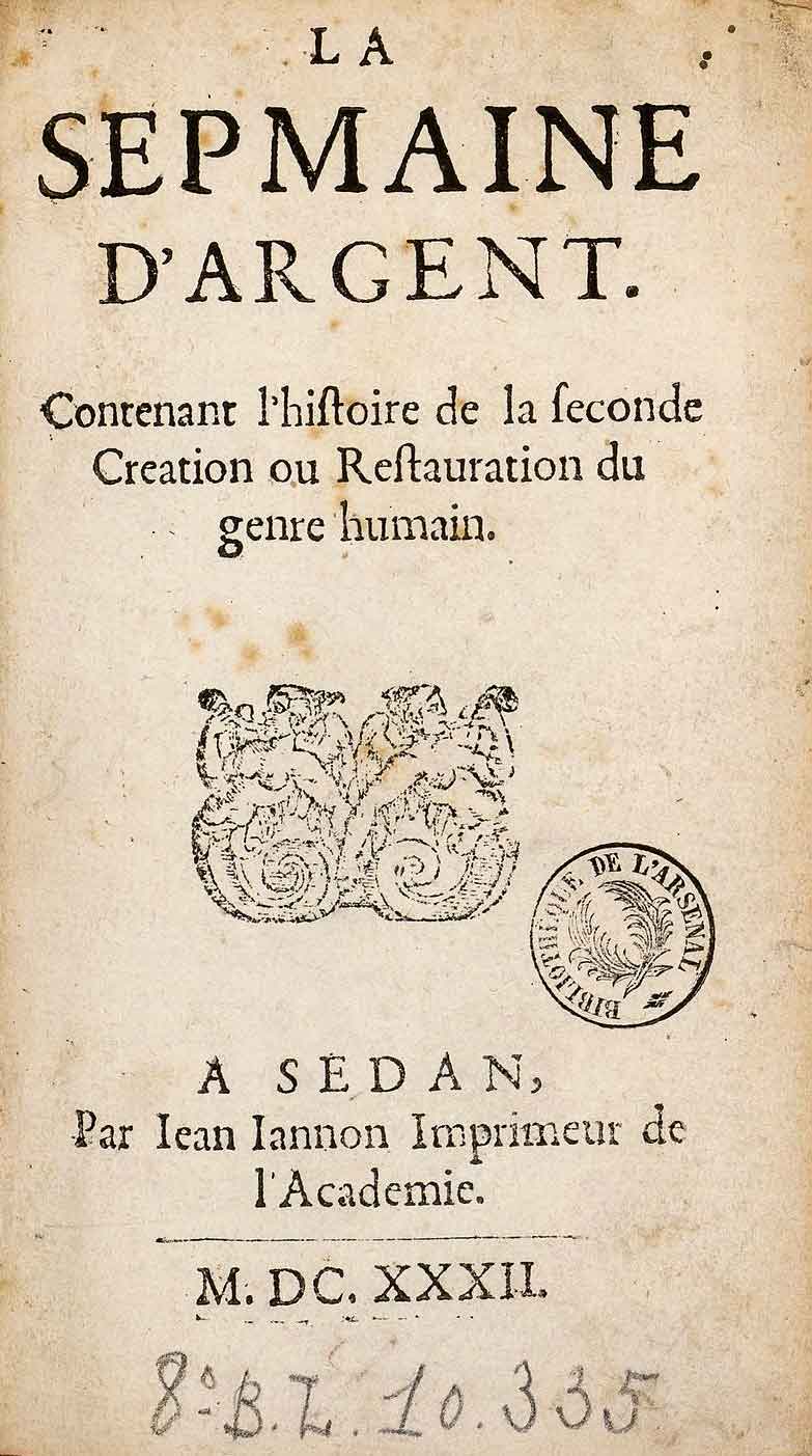 | ↑2 | Anmerkung: Imprimeur (de Son Excellence [le prince de Sedan] et) de l’Académie (sedanaise). Bis zur ersten Hälfte des 17. Jahrhunderts war Sedan Hauptstadt des Fürstentums Sedan und Raucourt. Nach der Schlacht von La Marfée ab 1642 Okkupation durch Frankreich. Heute liegt Sedan im Département Ardennes der Region Grand Est. |