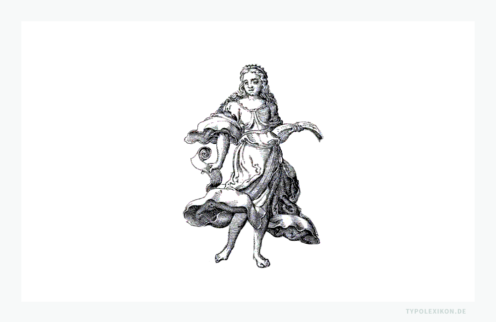 Das Motiv der »Kalliope« – die Muse der »Schreibenden Künste« – wurde in der Typografie bis zum Ende des materiellen Handschriftsatzes mit physischen Drucktypen aus Metall (z.B. aus einer Blei-Zinn-Antimon-Kupfer-Legierung) von Schriftgießereien gerne als Alinea und insbesondere als Schlußstück vertrieben, welche zum »Typografischen Zierat« bzw. zum »Acczidenz-Zierat« (siehe Akzidenzschrift) zählten.