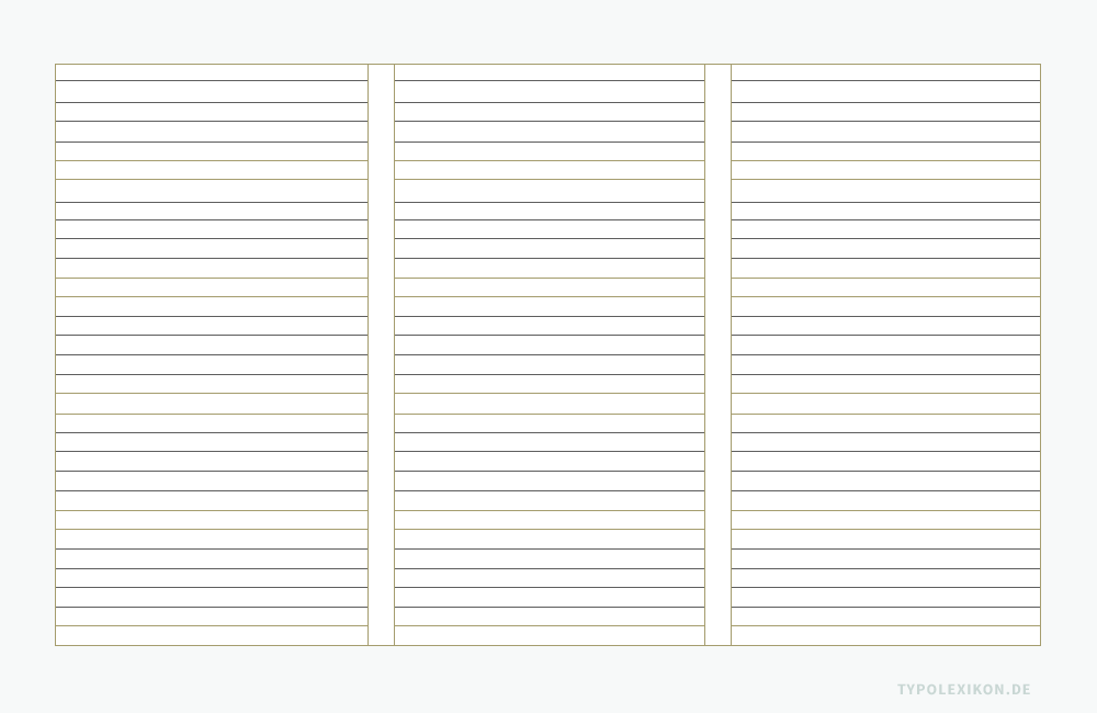 Die Anzahl von Kolumnen auf einer (Doppel)Seite und deren Spaltenbreite(n) ist primär vom Seitenformat und vom strukturellen Aufbau eines Layouts abhängig.
