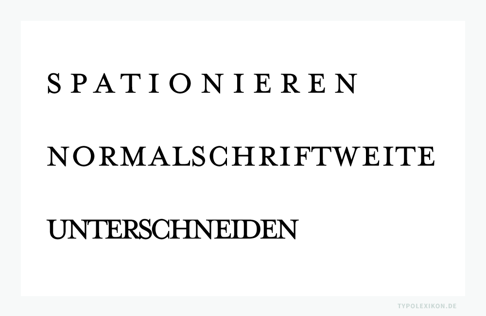 Typografischer Terminus für die Erweiterung der Schriftlaufweite, beispielsweise einer Druckschrift oder eines Webfonts, ausgehend von der Normalschriftweite (NSW). Im materiellen Schriftsatz (z.B. Bleisatz) auch als »Spatiieren« oder als »Sperren« bezeichnet; engl. »Spacing«. Etymologisch von »Spatium« für »Zwischenraum« aus dem lat. »spatium« für »Raum«.