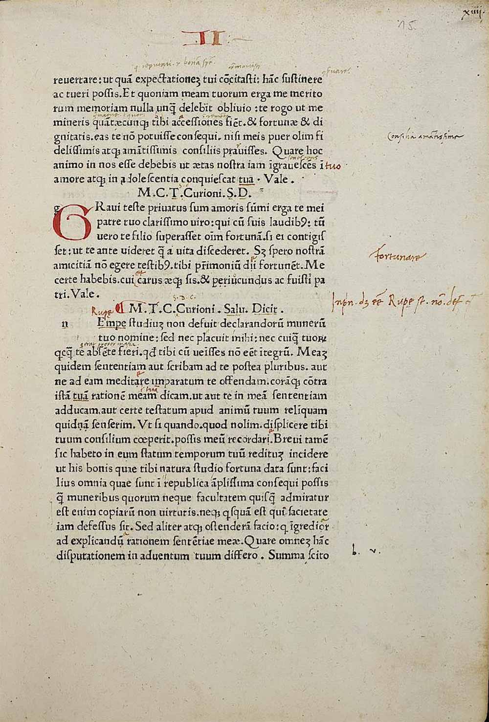 In ihrer eigenen Offizin in Rom druckten Sweynheym und Pannartz 1467 die erste Ausgabe der berühmten »Epistulae familiares« von Marcus Tullius Cicero (106–43 v.Chr.), einem römischen Dichter, Redner und Staatsmann, in ihrer zur Reinform weiterentwickelten Sublacensischen Antiqua-Type.