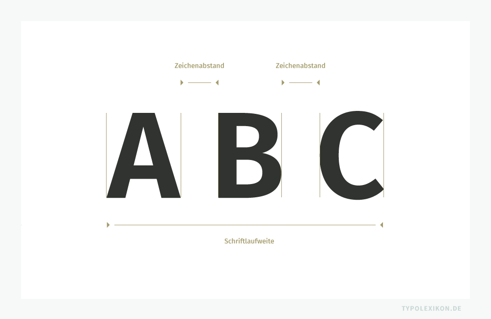 Unter »Zeichenabstand« wird der linke und rechte Abstand von benachbarten Buchstaben, Arabischen Ziffern und Schriftzeichen verstanden; ugs. Buchstabenabstand.